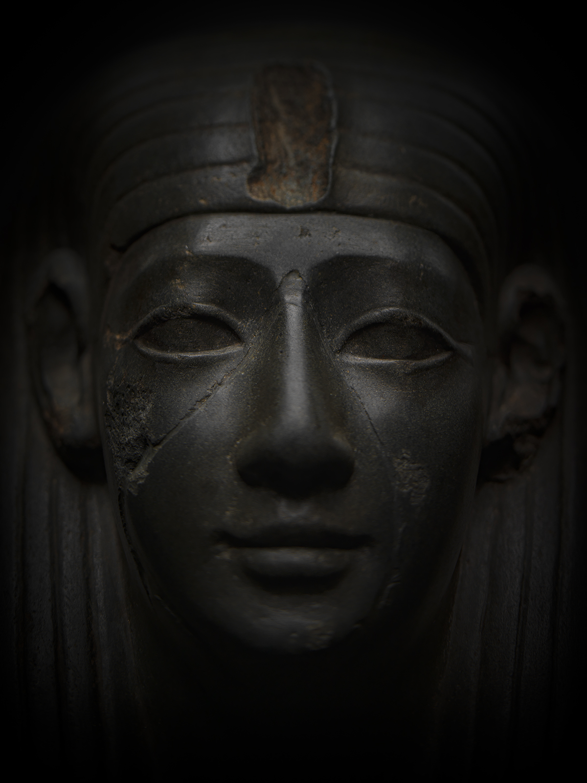 For over forty years, this striking head, elegantly carved, with serene features and a striated wig, lay hidden from public view in a private collection. When it resurfaced at a Gloucestershire auction in 2022, its oddly shiny surface and unusually preserved nose led some to dismiss it as a later imitation. The earliest known provenance at this time was its appearance in a Christie's sale in 1978 (Fine Antiquities, Christie’s, London, 14th June 1978, Lot 387).