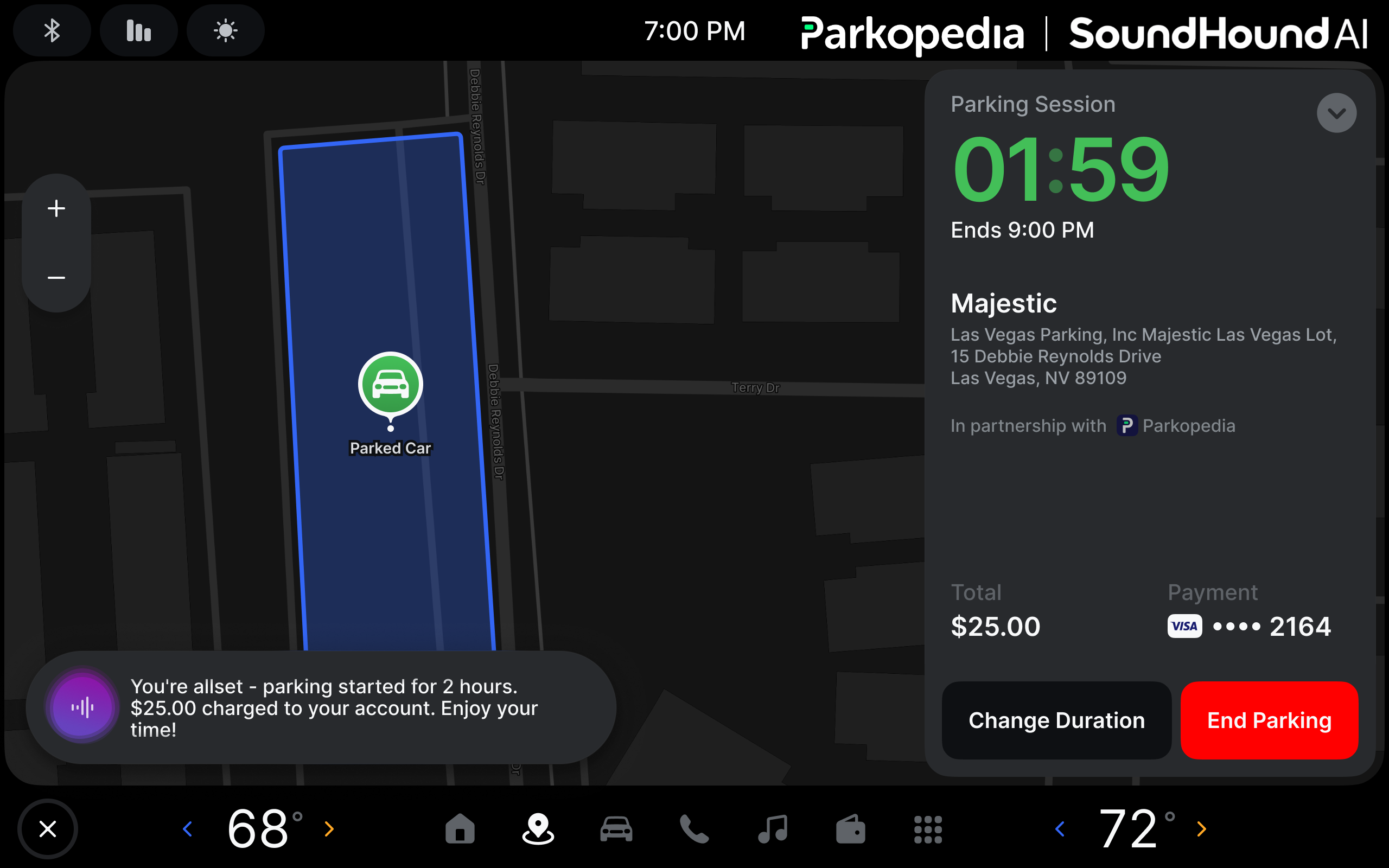 The collaboration integrates Parkopedia’s extensive global parking database, covering more than 90 million spaces in over 20,000 cities, with SoundHound’s in-car voice commerce platform. Drivers can now simply ask their vehicle to find parking, compare real-time prices and availability and complete payments on the spot, all within seconds and all by voice.